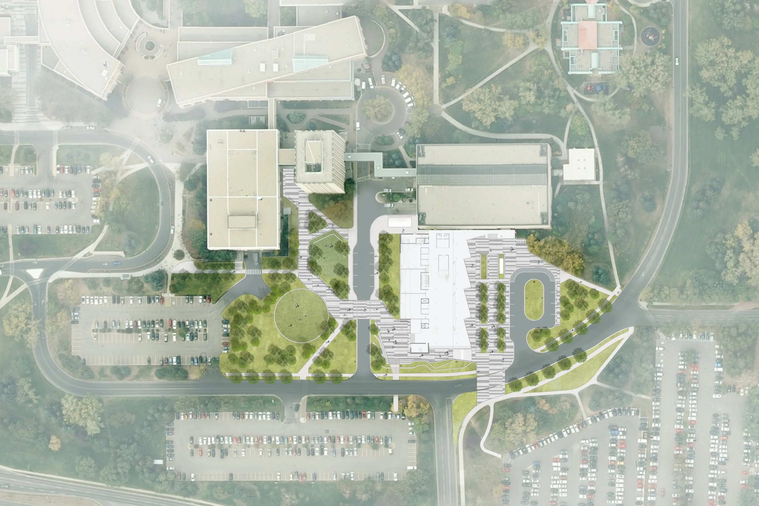 Create a distinctive character and destination tied to the broader campus and regional landscape;Improve connectivity across campus;